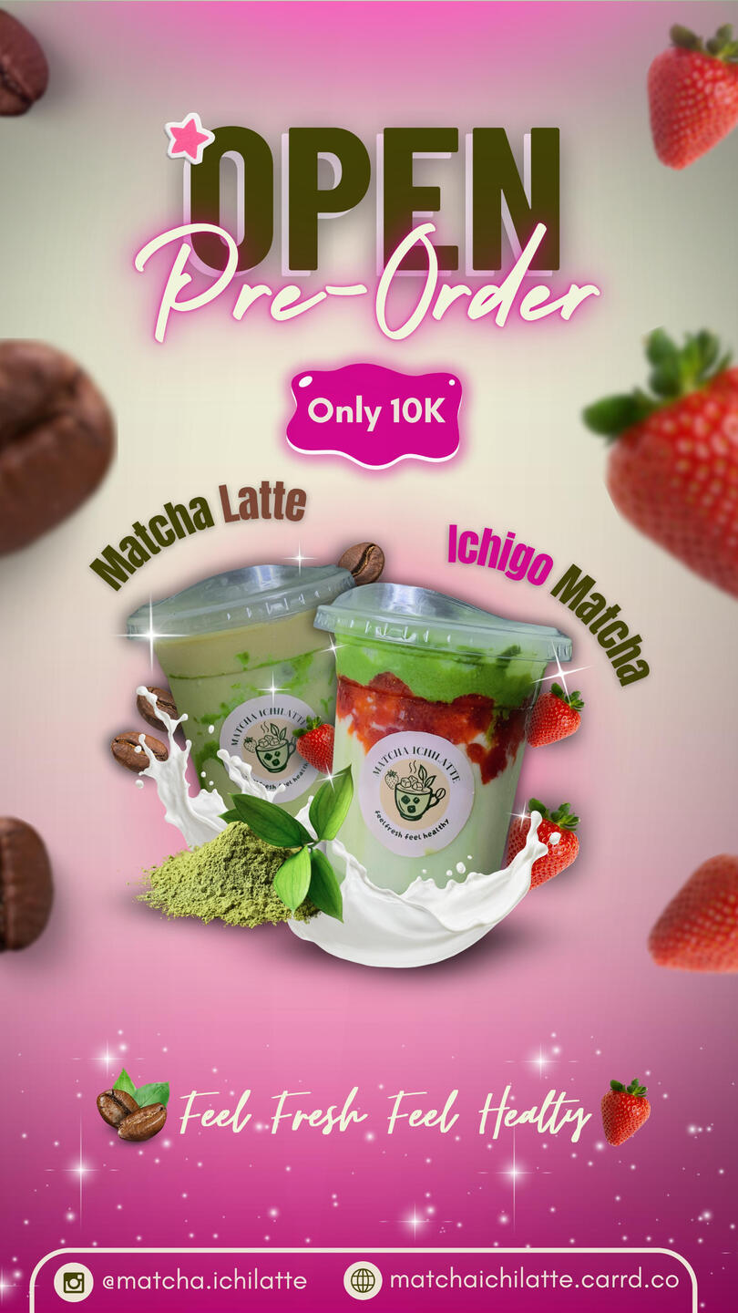 Your kawaii drink buddy untuk setiap mood kamu! ✨Matcha Ichilatte adalah minuman fresh & healthy dari teh otentik khas Jepang yakni ✨Matcha✨Eitssss! tapi kita kasih cinta rasa lokal buat kamu yang kurang suka matcha dan mau nyoba matcha dong bestofrendo! 😋Kita punya tiga rasa yang super gemas loh:🍵 Matcha ラテ (Matcha Latte) – calm & focus like a Zen master